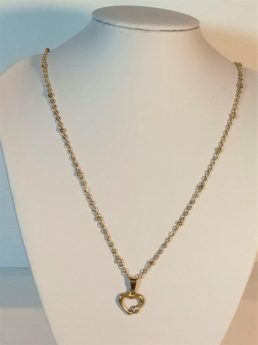 Chaîne et pendentif en acier inoxydable.