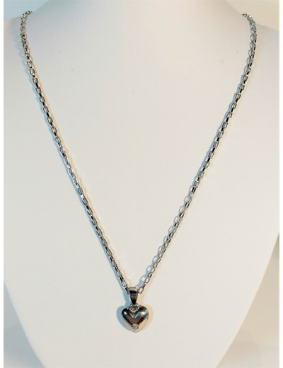 Chaîne et pendentif en acier inoxydable.