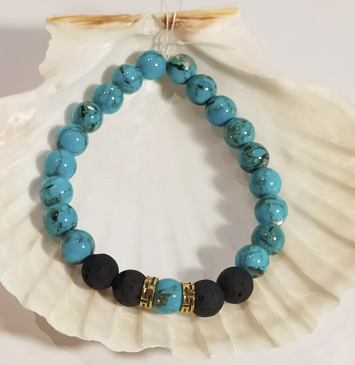 Pierre de lave, jade avec coquille bleu turquoise