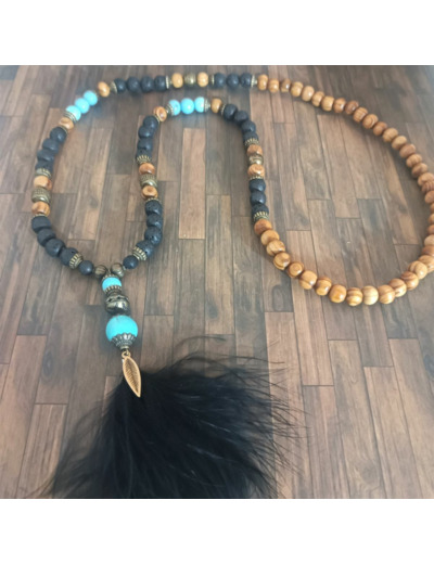 Craquez pour ce magnifique sautoir en perles naturelles et bois.
