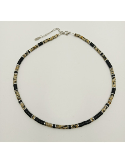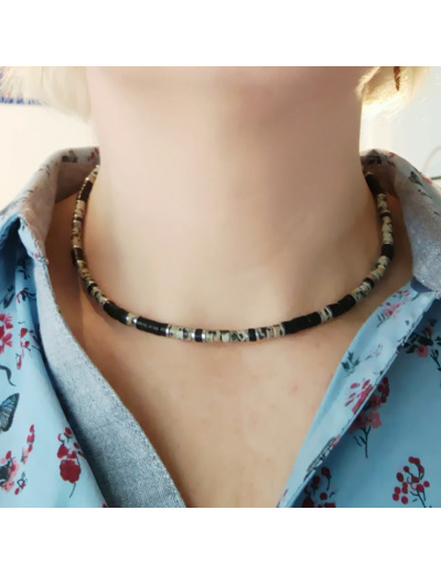 Jaspe dalmatien, hématite, agate noire.