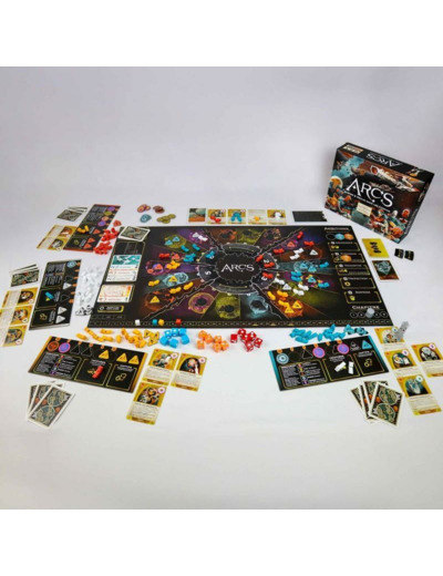 Dans un univers sombre et décalé, Arcs propose une expérience de jeu immersive pour 2 à 4 joueurs. Chaque partie est une lutte intense où vous maniez des cartes multi-usages pour copier, innover ou prendre l’initiative. Déclarez vos objectifs, rassemblez votre flotte et lancez vos dés gravés pour des affrontements rapides et décisifs. L’univers visuel, riche de plus de 60 illustrations uniques, donne vie à ce plateau à six volets, tandis que les pièces en bois et les dés personnalisés renforcent l’immersion.