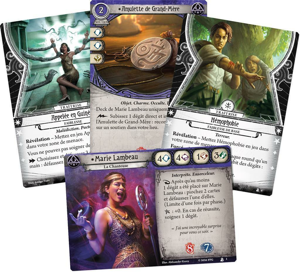 Plongez dans l’univers occulte d’Arkham avec Marie Lambeau, une enquêtrice dont la voix ensorcelante cache un pouvoir ancestral. Transformez chaque blessure en une force mystique capable de renverser le cours de la partie.