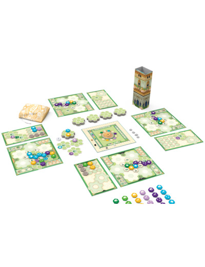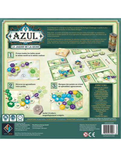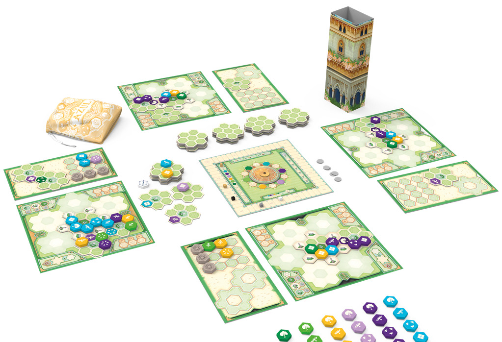 En utilisant l’innovatrice mécanique de sélection emblématique de la collection des jeux Azul, les joueurs doivent choisir judicieusement des tuiles colorées pour décorer leur jardin.