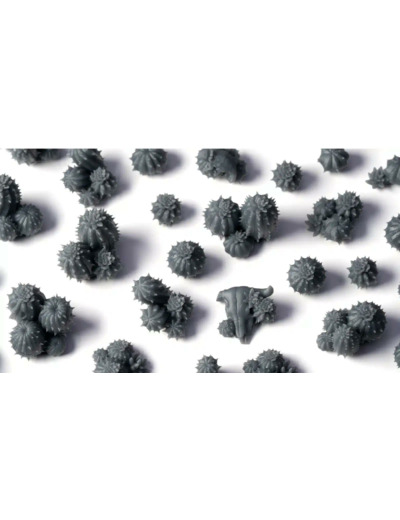La boîte contient une grappe complète de Barrel Cacti Basing Bits, non peints, prêts à être personnalisés selon vos envies. Fabriqués en résine dure, ils bénéficient d’une impression 3D haute résolution pour des détails nets et précis.