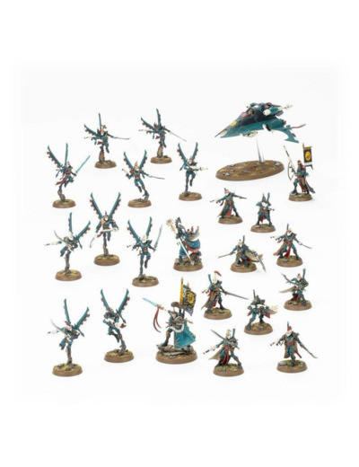 Cette boîte permet d'assembler 23 figurines en plastique d'Aeldari: