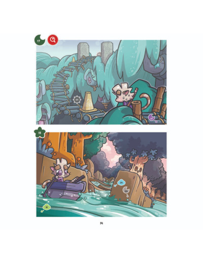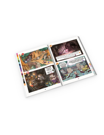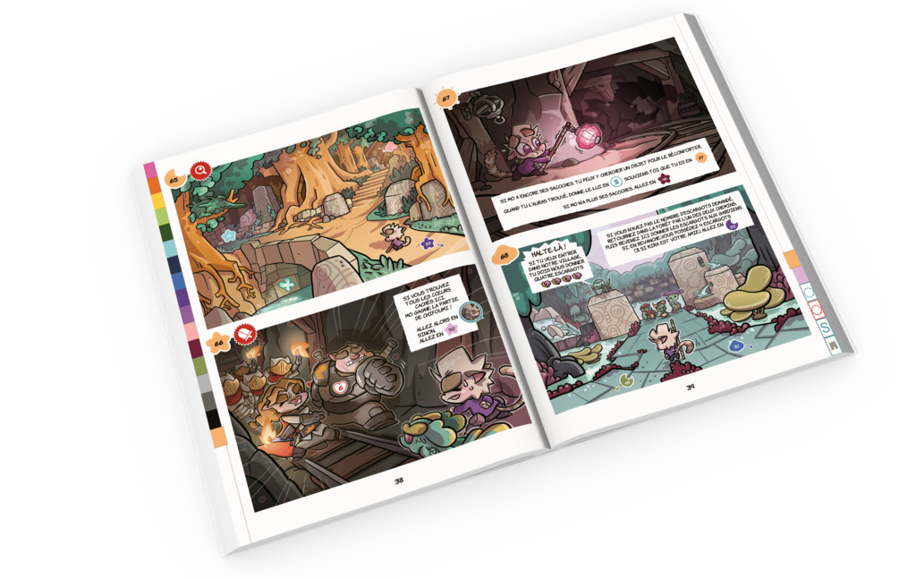 - Un livre en grand format (18,5 x 27 cm) offrant de grandes cases pour faciliter le jeu et la prise en main par les petits, et pour renforcer l’immersion.