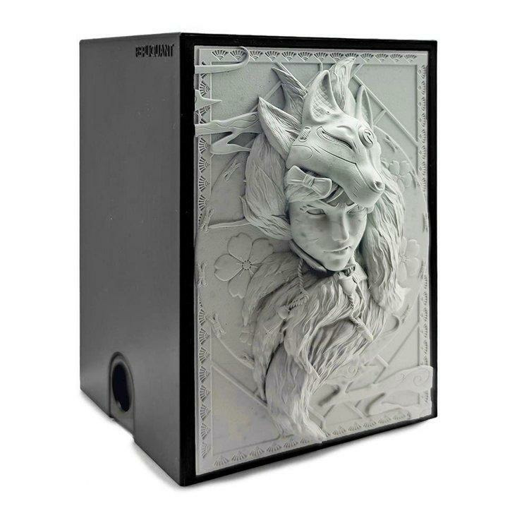 Vous aimez la mythologie japonaise? Parfait ! La Kistune est faite pour vous. Le design représente un esprit polymorphe. Comme tout renard, celui-ci est rusé et a pris l’apparence d’une jeune femme (elle-même déguisée en renard à neuf queues pour mieux ruser). Vu son expression... son esprit sauvage reste toujours fort.