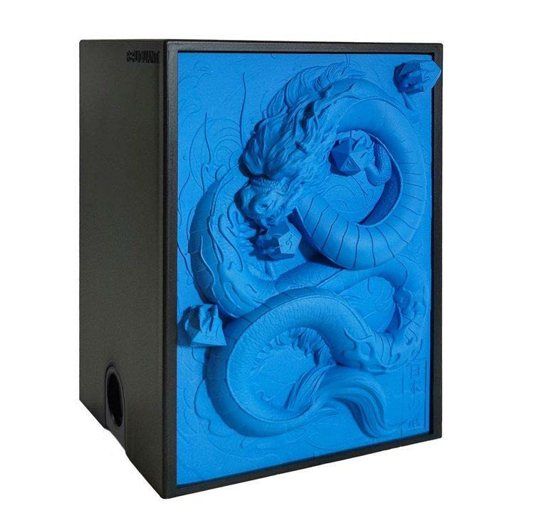 L’histoire de Ryujin est une légende japonaise : le Dieu de la Mer. Il vit au fond de l’océan dans un immense palais fait de joncs, de coraux rouges et blancs. Depuis son palais, il protège la mer et contrôle les marées à l’aide de joyaux magiques. Notre Dieu dragon des mers tient dans ces pattes composées de trois griffes (caractéristiques des dragons) des dés en guise de joyaux enchantés. Il est aussi le kami des serpents (considérés par les shintoïstes comme les messagers de Ryujin).