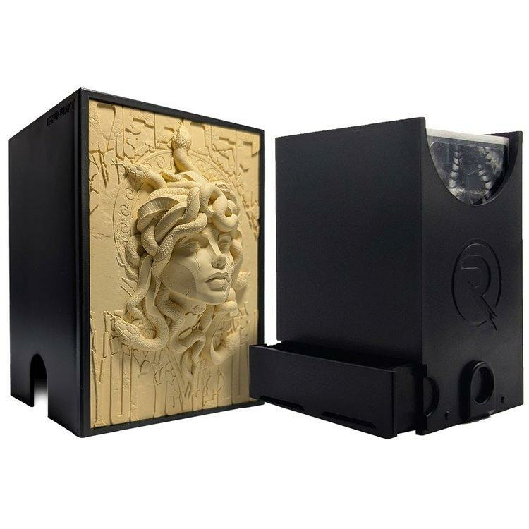 Cette deck box d’exception, ornée d’une façade sculptée à l’effigie de Méduse, telle une ◊uvre d’art. Les détails finement gravés capturent la grâce de la Gorgone, avec ses serpents entrelacés et son regard légendaire, aussi hypnotique que majestueux. Plus qu’un simple accessoire de jeu, cette deck box incarne la fusion parfaite entre esthétique mythologique et fonctionnalité. Idéale pour protéger vos cartes de TCG (jeux de cartes à collectionner) tout en affirmant votre deck et stratégie de jeu.