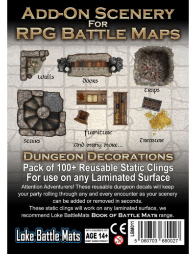 Ce set contient plus d'une centaine d'autocollants statiques pour personnaliser vos cartes. Il s'agit d'un complément fantastique à la boîte à outils de tout maître de jeu. Conçu pour permettre une personnalisation très rapide à n'importe quel Battle Mat, cet outil réduit énormément le temps de préparation du jeu.