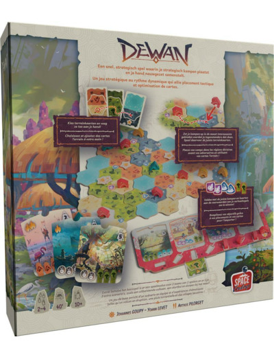 Prenez la tête de votre tribu et partez à la conquête du nouveau monde. Dans Dewan, chaque joueur incarne une tribu nomade qui explore des territoires redevenus sauvages. En posant stratégiquement vos camps sur les zones clés du plateau, vous récoltez des ressources essentielles et tentez de remplir vos objectifs avant vos adversaires.