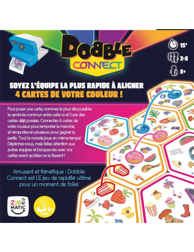Plongez dans une expérience ludique où chaque seconde compte. Dobble Connect se joue à deux contre deux, mêlant réflexion et agilité pour créer une ligne de quatre hexagones à votre couleur. Les règles simples et dynamiques garantissent des moments de complicité et de compétition, parfaits pour réunir famille et amis autour d’un défi captivant.