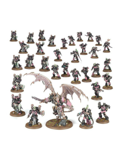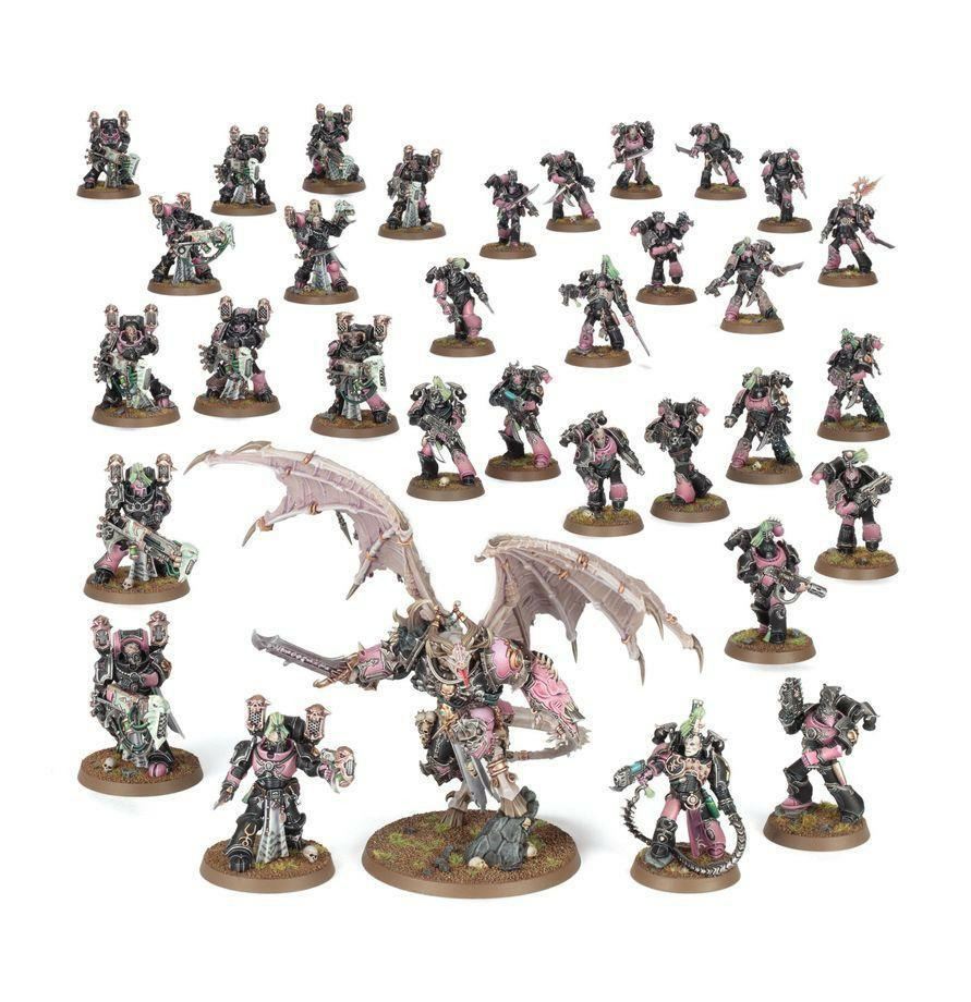 Cette boîte pleine à craquer est parfaite pour entamer une nouvelle collection d'Emperor's Children ou pour étoffer une armée existante que vous pourrez ensuite déchaîner dans les parties de Warhammer 40,000, en faisant des économies par rapport à un achat des kits au détail. Menée par un puissant Prince Démon ailé de Slaanesh, cette force est composée de guerriers en armures énergétiques. Vous y trouverez 10 Infracteurs et 10 Tourmenteurs pour vous emparer des objectifs et les tenir, tout en frappant fort au corps à corps. Ils sont renforcés par deux unités de Marines du Vacarme prêts à briser la raison (et les armures) de tous ceux qui oseraient se dresser sur votre route.