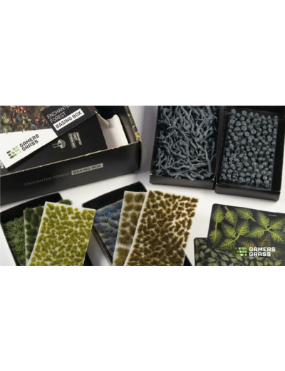 Le coffret contient : 1x Forest Mushrooms Basing Bits, 1x Gnarled Branches Basing Bits, 1x Strong Green Shrubs, 1x Bluebeard Flowers, 1x Strong Green 6 mm, 1x Mixed Green 6 mm, 1x Dark Moss 2 mm, 1x Moss 2 mm, 1x Lords-and-Ladies Laser Plants, 1x Bracken Laser Plants, ainsi qu’un livret de tutoriel complet. Tous les Basing Bits sont fournis non peints pour une personnalisation totale.