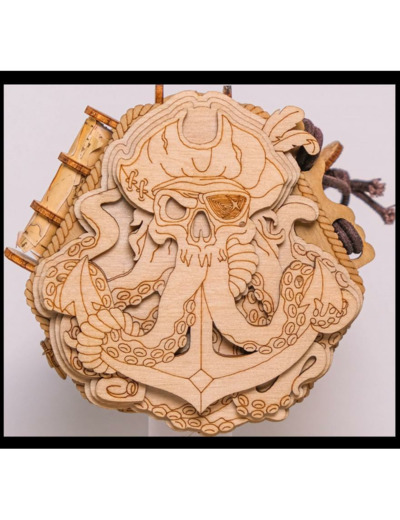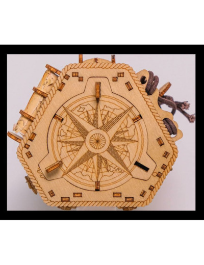 Boussole de Barbe Noire - boîte de puzzle unique en son genre, inspirée des aventures du légendaire Capitaine Barbe Noire. La Boussole de Barbe Noire comprend diverses énigmes, chacune déverrouillant la suivante, menant finalement à un compartiment caché dans la boîte.