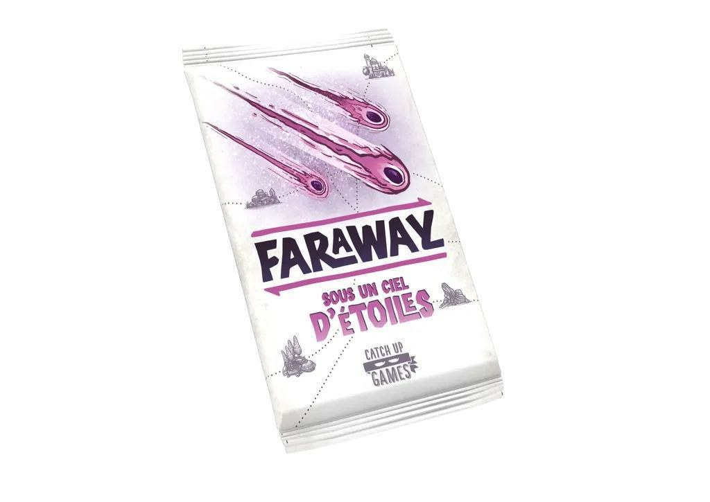 Cette seconde extension pour Faraway ajoute 15 cartes Météorites à la pioche de cartes Région. Particularité : ces cartes restent visibles en fin de partie, et sont ainsi prises en compte dans les conditions de score de n’importe quelle autre carte de votre tableau, y compris celles décomptées avant.