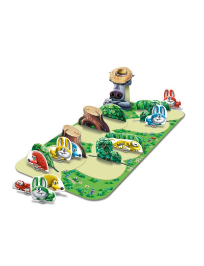 Les animaux de la forêt ont joué dehors toute la journée, et le soir venu, un loup s'est assoupi sur le chemin. Comment vont-il passer devant lui sans se faire repérer? Les joueurs lancent le dé chacun leur tour pour faire avancer un des trois animaux de leur couleur. Chacun peut rester caché en sécurité derrière le buisson de la même forme que lui, ou derrière une souche. Mais si le dé affiche le loup, celui-ci se réveille et effraye tous les animaux qui ne sont pas correctement cachés! Ils retournent alors au début du chemin et retentent leur chance. Le premier joueur qui amène tous ses animaux au bout du chemin gagne la partie.