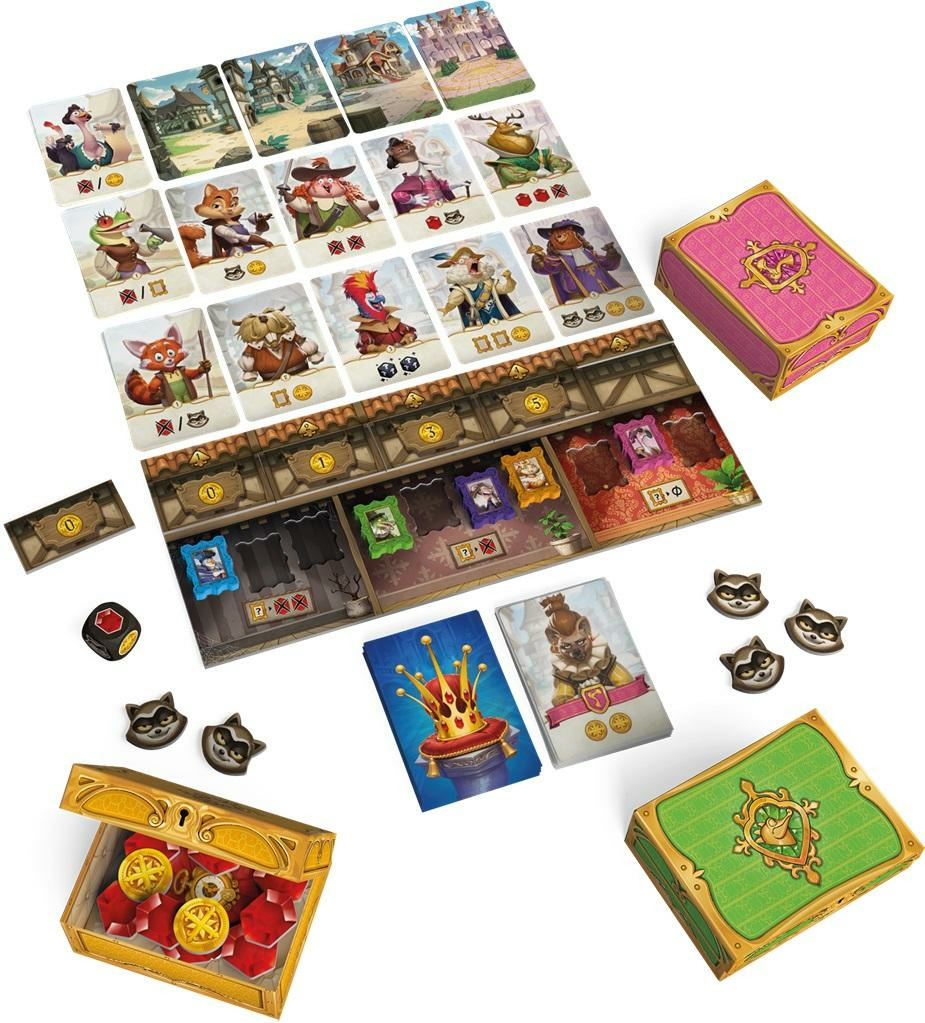 À chacun des quatre tours, les cartes mercenaires s’ajoutent et la pioche augmente, augmentant les effets qui perturberont les stratégies de vos adversaires. À la fin de la partie, le joueur le plus riche sera couronné et dirigera le royaume !