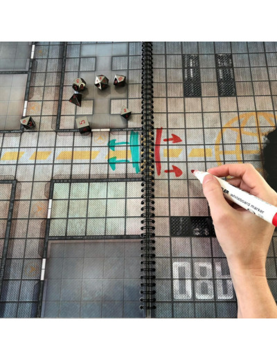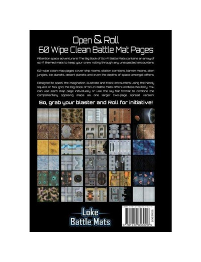Le Giant Book of Sci Fi Battle Mats est une collection de 62 pages au format A3 de surfaces de jeu regroupées en un seul volume (reliure spirale). Celui-ci est dans un univers science-fiction et comprend donc certaines pages quadrillées non pas en carré mais en hexagones pour les combats de vaisseaux.