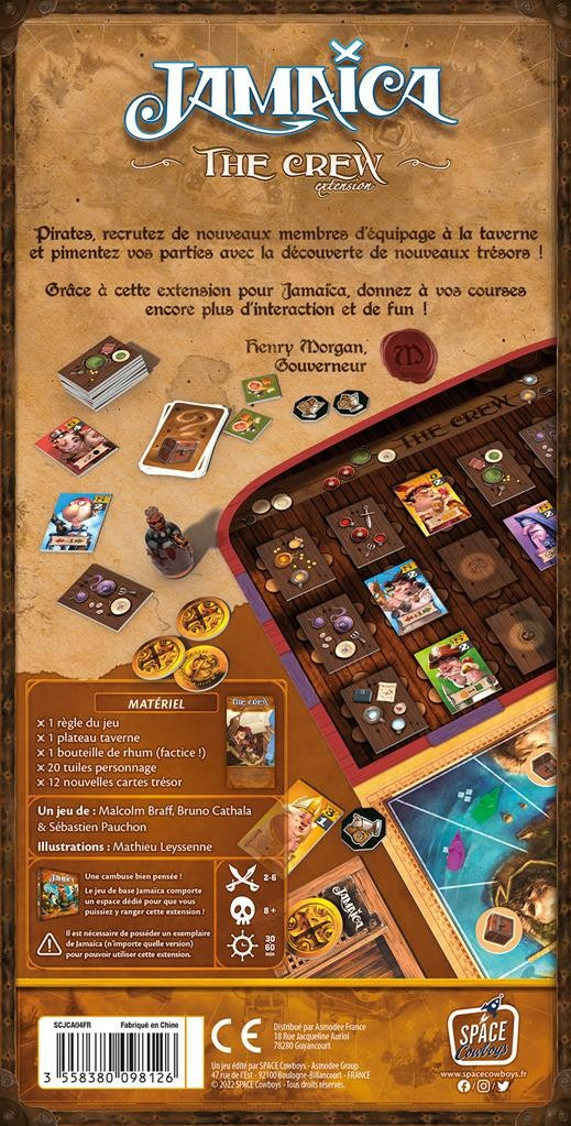 Pirates, recrutez de nouveaux membres d'équipage à la taverne et pimentez vos parties avec leurs pouvoirs et la découverte de nouveaux trésors ! Grâce à cette extension pour Jamaica, donnez à vos courses encore plus d'interaction et de fun ! Chargez davantage de marchandises avec le tonnelier, attaquez vos adversaires à distance avec le flibustier ou gérez mieux vos déplacements avec l'ancrier !