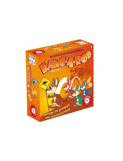 Les cartes sont mélangées et on en distribue 5 à chaque joueur. On enlève 5 cartes sans les regarder, le reste est posé en pile sur la table faces cachées, à côté des kangourous. Le premier joueur choisit une carte de son jeu, la pose en annonçant sa couleur, prend le kangourou de la couleur correspondante et le pose devant lui. Le joueur peut prendre ce kangourou au milieu ou chez un autre joueur. Si ce dernier a une carte de cette couleur, il peut défendre son kangourou en jouant tout de suite cette carte. Mais le premier peut aussi rejouer la même carte pour le reprendre! Les joueurs repiochent pour avoir toujours 5 cartes en main. Dans tous les cas, cest au joueur suivant de jouer.La partie se termine quand un joueur a joué sa dernière carte kangourou. Le joueur ayant attrapé le plus de kangourous remporte la partie ! On peut jouer plusieurs parties en totalisant les kangourous gagnés. Le gagnant est alors le joueur ayant attrapé un total de 11 kangourous.