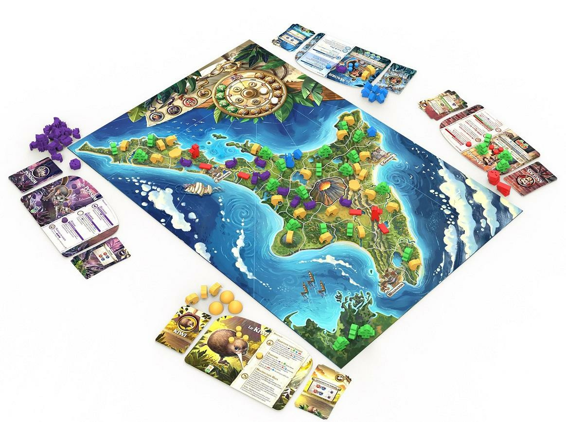 Explorez un univers riche, inspiré de la Nouvelle-Zélande préhistorique, où chaque décision influence l’équilibre fragile entre espèces et humains. Du kiwi fragile au possum envahissant, en passant par les colons anglais et les Maoris pacifiques, chaque faction propose une approche distincte pour dominer l’île et marquer des points. Le jeu combine réflexion rapide et tactique asymétrique dans des parties dynamiques de 15 minutes.
