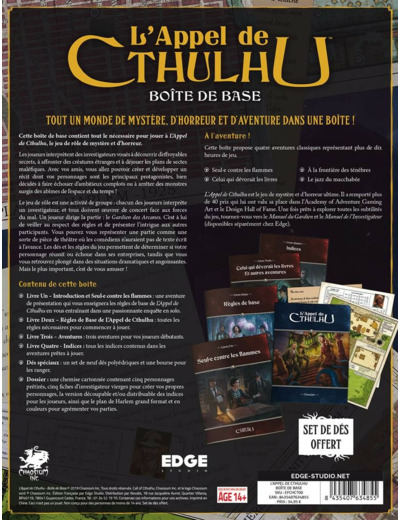 Plongez au cœur de l’horreur cosmique avec L’Appel de Cthulhu : Boîte de base, la porte d’entrée idéale dans l’univers fascinant de Lovecraft. Explorez, enquêtez, survivez face à l’inconnu.