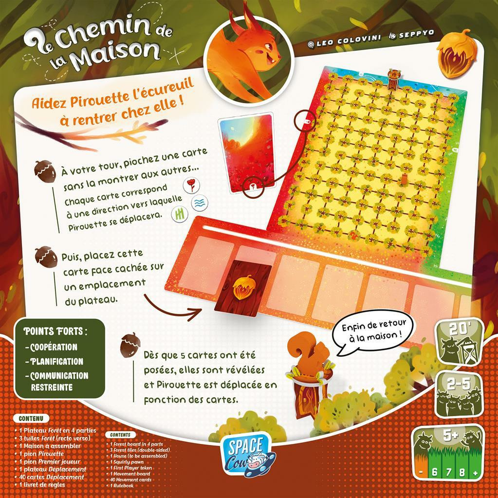 Saurez-vous ramener Pirouette jusqu’à sa demeure à travers la forêt ? Le chemin de la maison est un jeu coopératif pour les enfants et toute la famille.