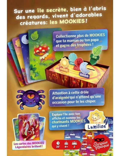 C’est un jeu qui procure beaucoup d’émotions, autant dans la découverte des Mookies tout au long de la partie qu'après la partie où les enfants vont pouvoir nommer leurs Mookies préférés avec l'affiche incluse dans la boite.