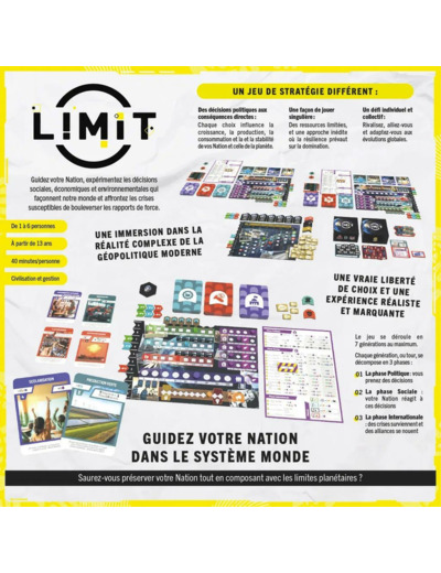 Limit propose une expérience unique, celle d’être à la tête d’une Nation dans notre système mondial. Tout maximiser est impossible... il sera donc question ici de choix, les vôtres et ceux des autres Nations.
