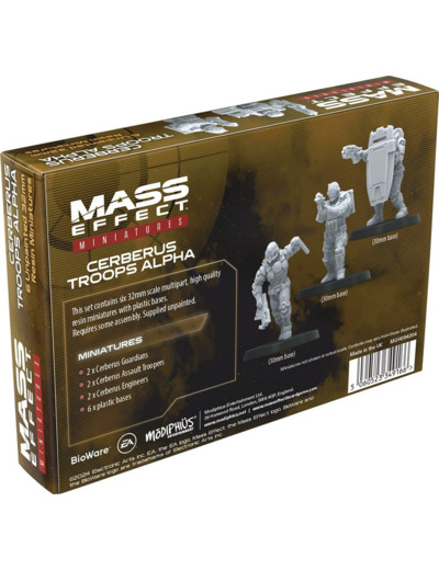 Cette boîte contient 6 figurines représentant des unités de l’organisation terroriste pro-humaine Cerberus : deux Ingénieurs, 2 soldats d’assaut et deux Protecteurs, avec des poses différentes pour chaque.