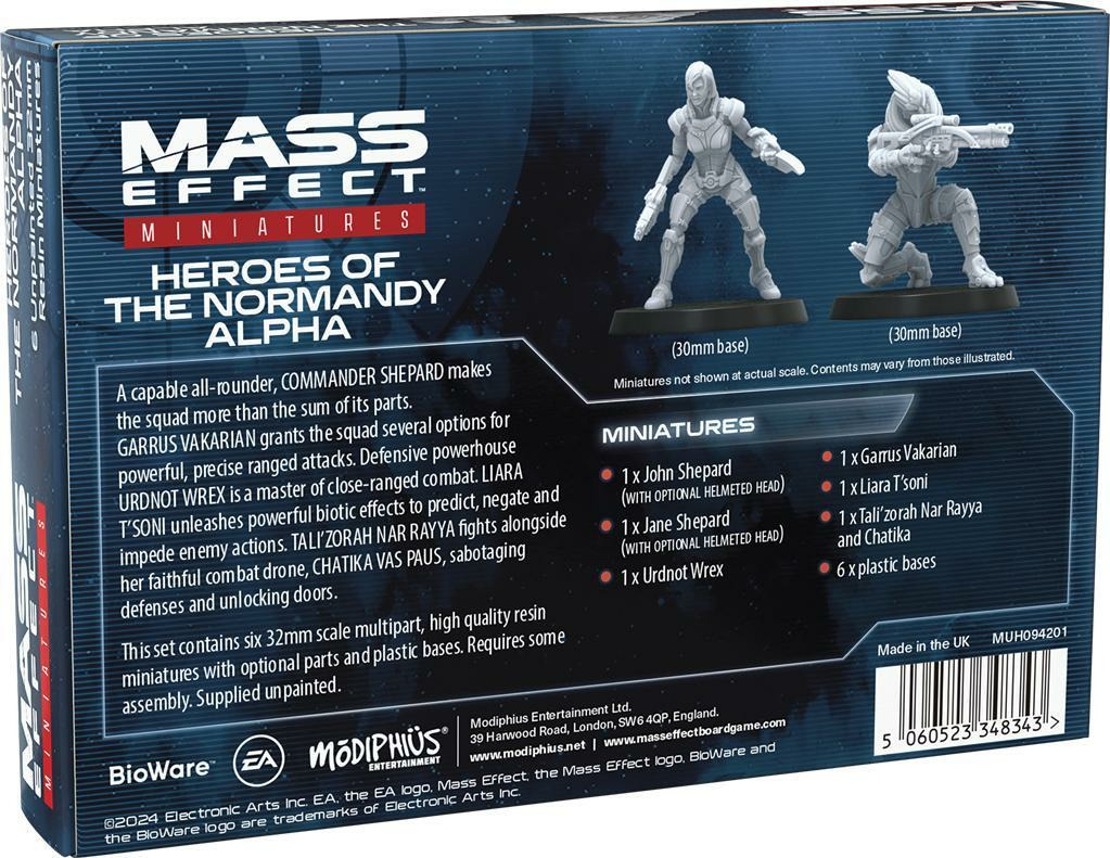 Une série de figurines en résine magnifiquement sculptées, à l’échelle 32 mm. Elles sont à assembler et non peintes, mais sont fournies avec des socles en plastique de 30 mm. Conçues pour s’adapter aux ennemis du jeu de plateau, ces figurines sont des améliorations indispensables pour les fans et collectionneurs de Mass Effect, ainsi que pour les joueurs du jeu de plateau.