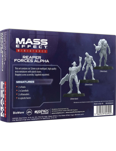 Une série de figurines magnifiquement sculptées, à l’échelle 32mm. Elles sont à assembler et non peintes, mais sont fournies avec des socles en plastique de 30 mm. Conçues pour s’adapter aux ennemis du jeu de plateau, ces figurines sont des améliorations indispensables pour les fans et collectionneurs de Mass Effect, ainsi que pour les joueurs du jeu de plateau.