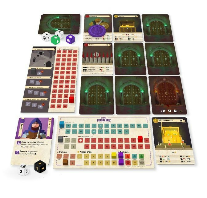Mini Rogue est un jeu profondément inspiré par les roguelikes. Monstres, dangers, trésors, boss, donjons, salles aléatoires et rencontres sont tous présents dans Mini Rogue. Dans ce jeu pour 1 à 2 joueurs, vous jouez un aventurier qui plonge dans un donjon, salle après salle, zone après zone, niveau après niveau, pour dérober le Sang d’Og : une légendaire et mystérieuse gemme. Chaque zone du donjon est disposée comme une ramification de salles. Chaque fois que vous serez face à deux salles, vous devrez en choisir une. Vous déterminerez l’issue de chaque rencontre en lançant le dé, et déciderez comment poursuivre l’aventure. Vous gagnez la partie si vous pouvez atteindre la dernière salle du Donjon et battre le Gardien final, les restes d’Og.