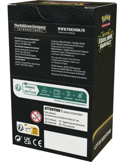 Avec Pokémon ME03 : Équilibre Parfait, développez votre collection tout en affinant votre stratégie. Ce bundle vous permet de construire des decks équilibrés, optimisés pour dominer vos adversaires et renouveler votre expérience de jeu. Gagnez en flexibilité et en contrôle, et transformez chaque partie en une démonstration de maîtrise.