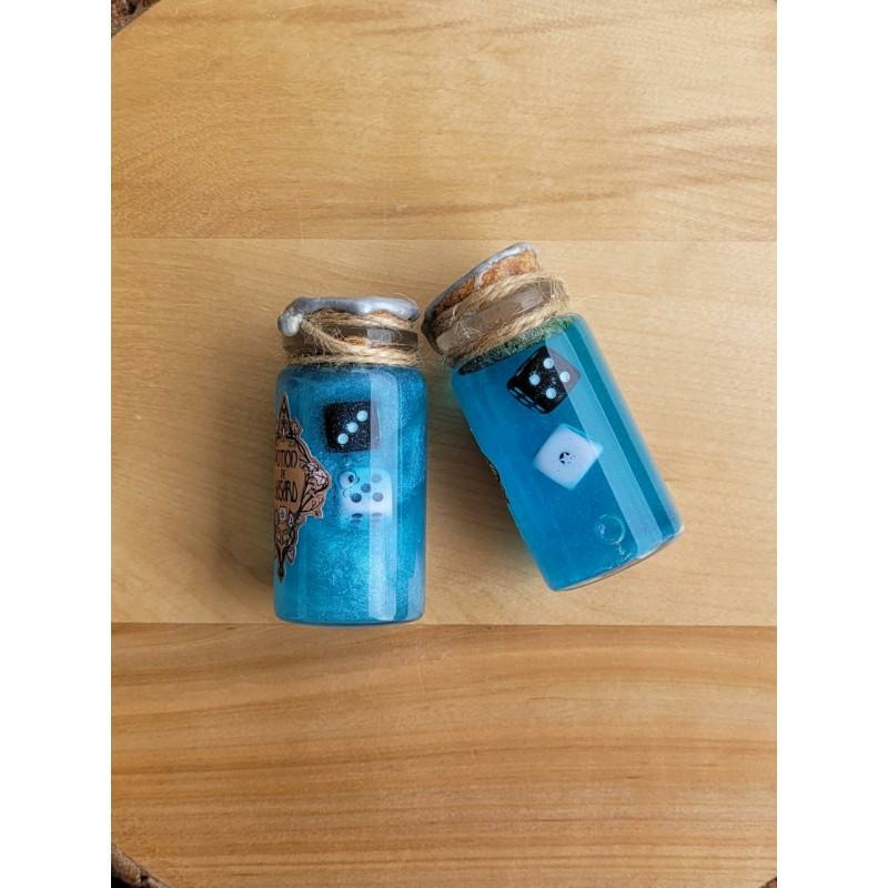 Laissez la magie du hasard guider vos jeux avec cette fiole unique où un dé flotte dans un liquide coloré. Secouez-la pour voir disparaître le dé dans des volutes pailletées avant de révéler votre chance.