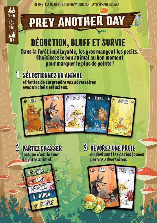 On résout chaque animal et nous lançons une seconde chasse avec les survivants. S’il reste plusieurs survivants à la fin de la troisième chasse. Ce sont les points sur les cartes qui départagent les joueurs. (Ours 1 ; Loup 2... )