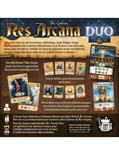 Dans Res Arcana™ Duo, chaque joueur incarne un mage et tente de surpasser en prestige son rival. Tirez le meilleur parti de votre pioche de 8 cartes.