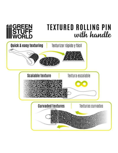 Il existe différentes textures disponibles qui le rende compatible avec différentes échelles de modélisme. Les textures sont adaptables entre elles pour pouvoir couvrir de grandes surfaces. De plus, grâce à sa poignée, il permet d'imprimer des textures créant des courbes afin de donner plus de réalisme à la maquette ou au socle.