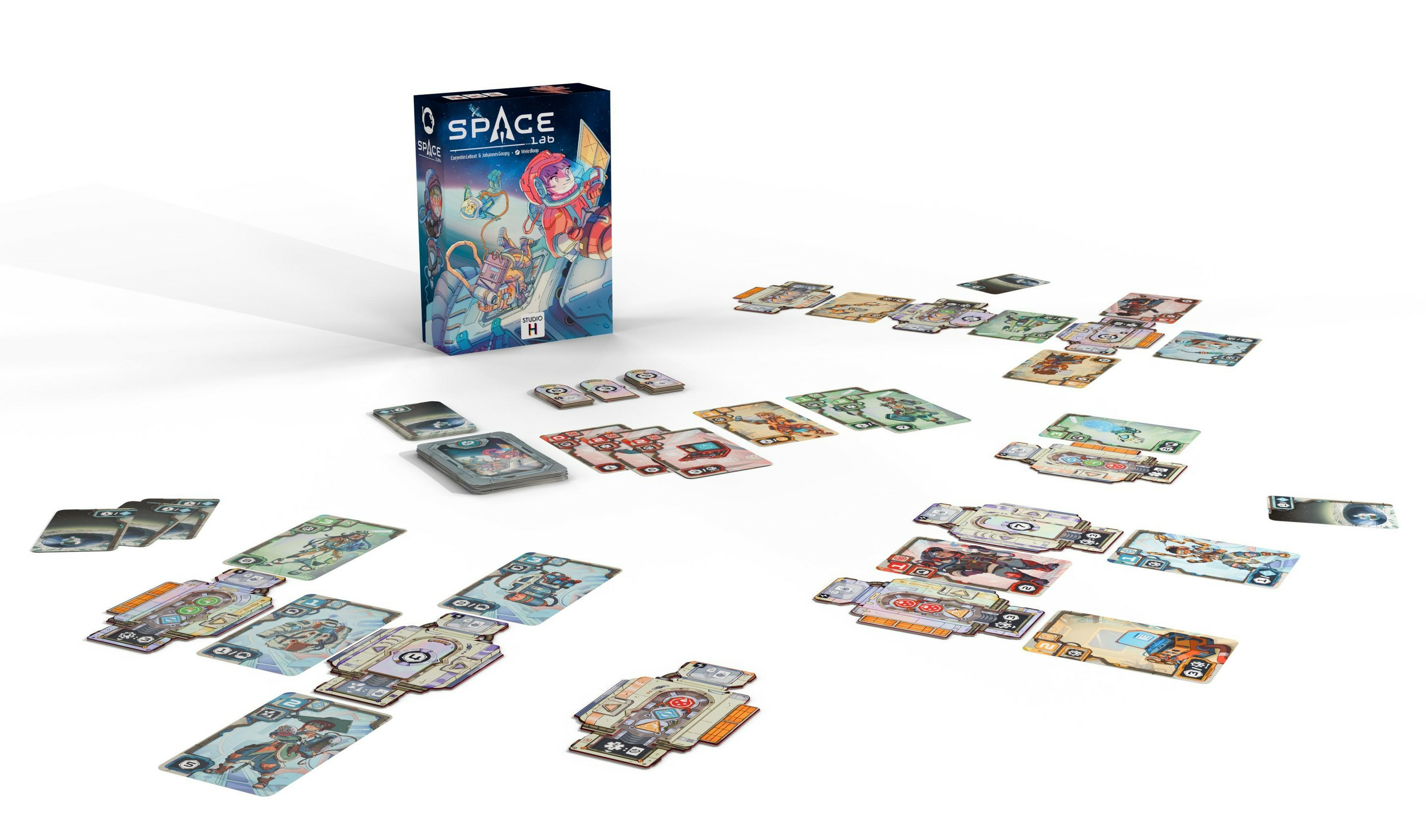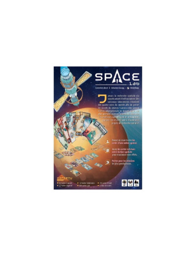 Space Lab plonge les joueurs au c◊ur d'une course scientifique interstellaire. À la tête d’une station spatiale modulaire, chaque joueur doit recruter les meilleurs spécialistes des quatre grandes agences mondiales pour mener à bien des projets ambitieux.