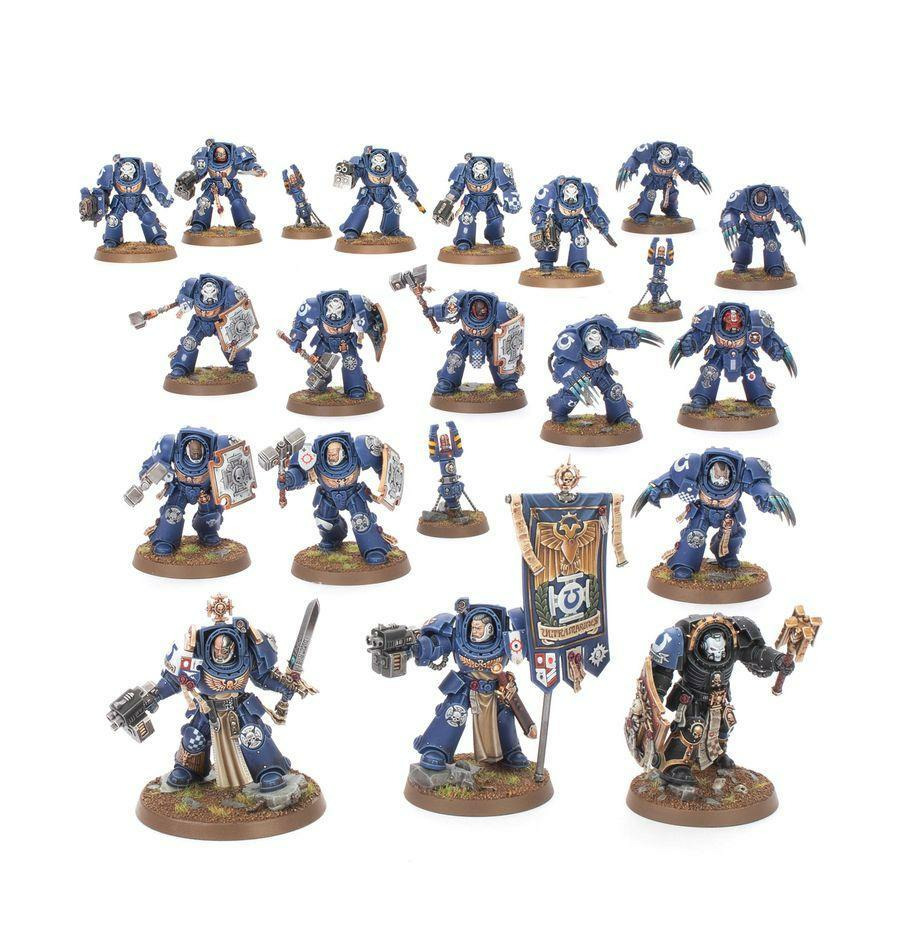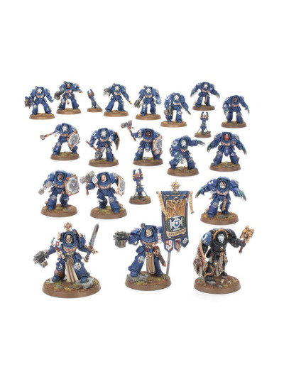 Cette boîte pleine à craquer est idéale pour débuter une collection de Space Marines ou étendre une armée existante, à déchaîner lors des parties de Warhammer 40,000, et vous ferez des économies par rapport à l'achat de ces kits au détail. Cette force est menée par un Capitaine polyvalent, un sombre Chapelain et un Doyen stoïque, tous engoncés dans une armure Terminator et prêts à se jeter au combat aux côtés de leurs guerriers agressifs. Le noyau de la force est constitué de 10 Terminators d'Assaut, qui font leur première sortie exclusive dans cette boîte et forment une cohorte implacable de spécialistes du corps à corps. Ils sont soutenus par 5 Terminators standards, qui apportent à la fois leurs capacités de mêlée et leur terrible puissance de feu, et qui sont idéaux pour tenir les objectifs.