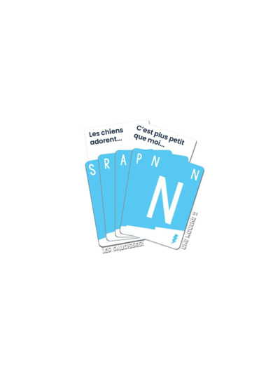 Débarrassez-vous de vos lettres en répondant plus vite que les autres à des thèmes rigolos et adaptés aux petits comme aux grands (Un animal rigolo, Une couleur dans un arc-en-ciel, Un métier rigolo... ). Stimule l'imagination et la réflexion ! Parfait pour jouer en famille ou avec les copains. Règles expliquées en 1 minute !