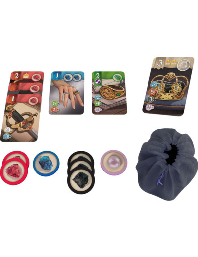 Emparez-vous de 3 Gemmes et Perles connectées du plateau commun, achetez des cartes joaillerie et appliquez ses effets, attirez les faveurs royales, utilisez vos Privilèges à bon escient et soyez le premier à atteindre l’une des 3 conditions de victoire !