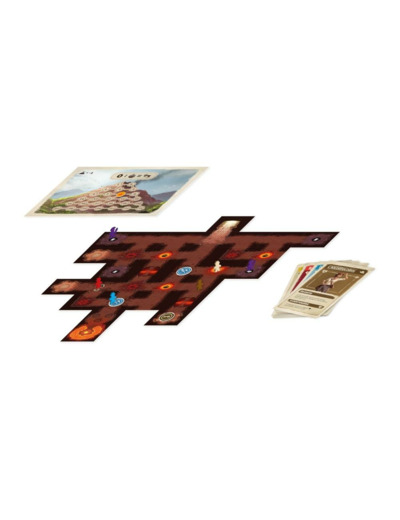 Les habitants se méfient des étrangers et prétendent ne rien savoir du temple perdu que vous cherchez. Mais un jeune villageois, voulant vous impressionner, vous propose de vous guider vers d’étranges ruines sur la Montagne. Vous le suivez et atteignez finalement une porte de pierre gravée dans la falaise. Les inscriptions parlent de feu, de danger, de sang. Vous ne leur prêtez aucune attention et ouvrez le passage vers les profondeurs du volcan » .