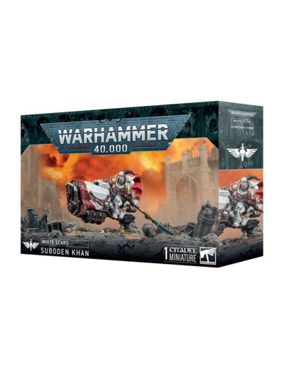 Suboden Khan est un authentique fils de Chogoris qui dirige la Première Confrérie des White Scars, monté sur Tonnerre, sa moto antigrav. Maître du combat en selle, il mène ses forces dans des chasses épiques et des poussées fulgurantes, en allant percuter les lignes ennemies et faucher implacablement les adversaires mis en fuite.