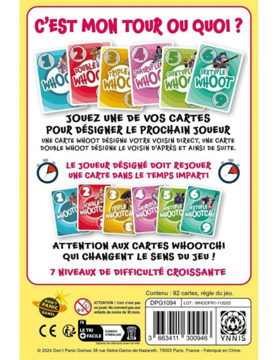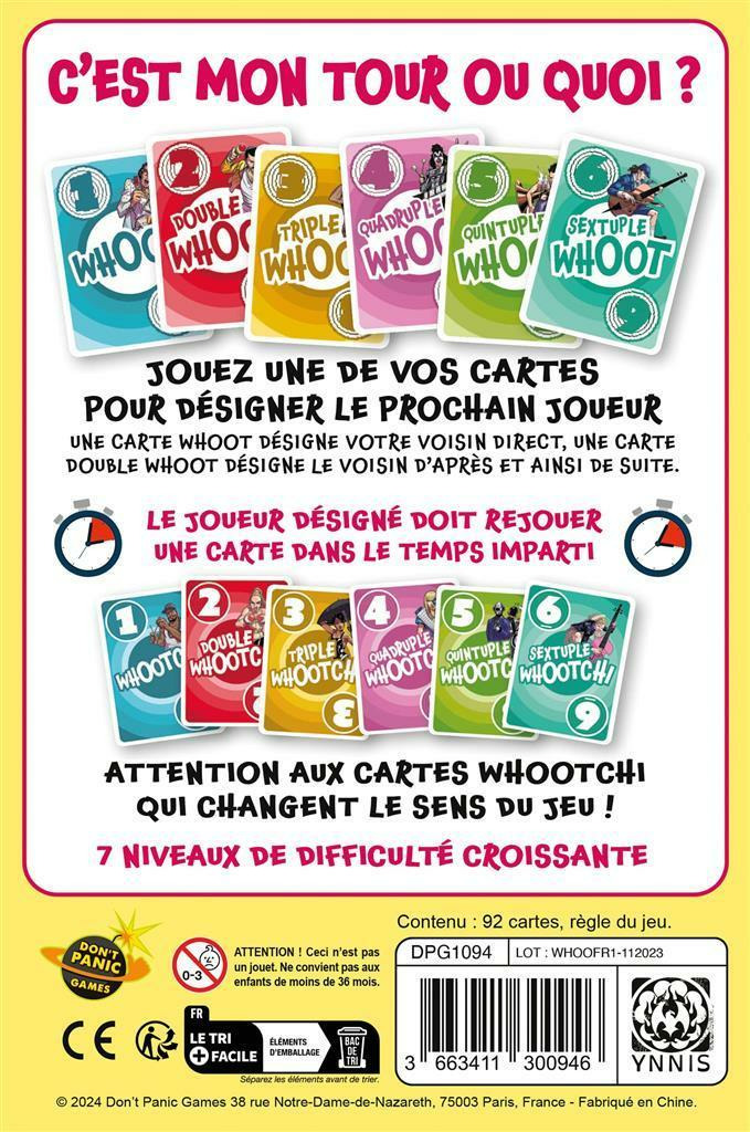 Il y a 6 niveaux de difficulté, ajoutant de nouvelles règles de pose petit à petit, dont les cartes qui changent le tour de sens !
