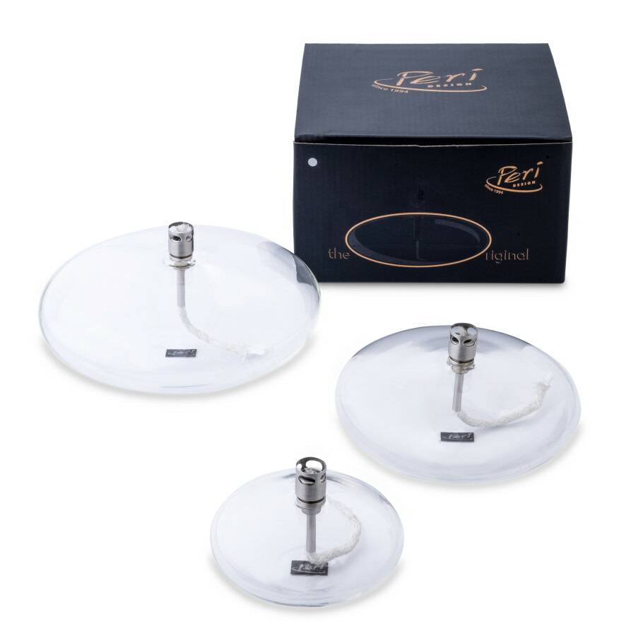 Lampe à huile galet transparente avec porte mèche en acier chromé.