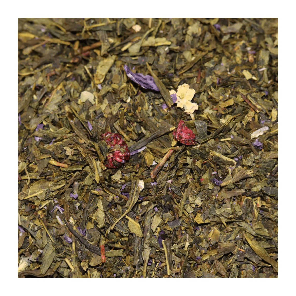 Sur un mélange de thé vert Sencha et de thé blanc, la framboise et la violette s'accordent pour donner un arôme subtil à cette infusion.