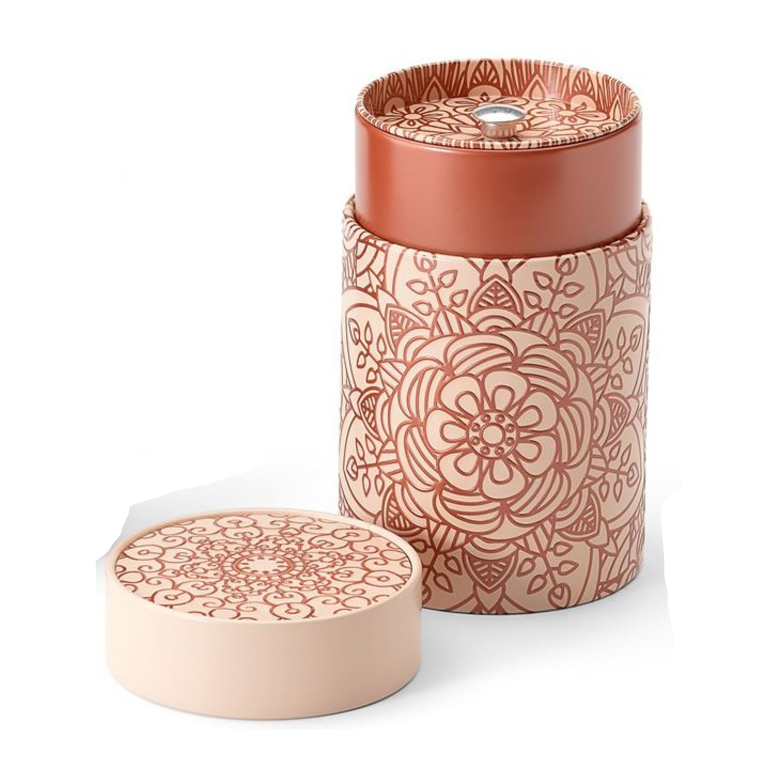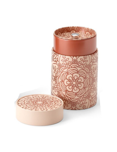 Boite cylindrique en métal avec un motif mandala, environ 150g